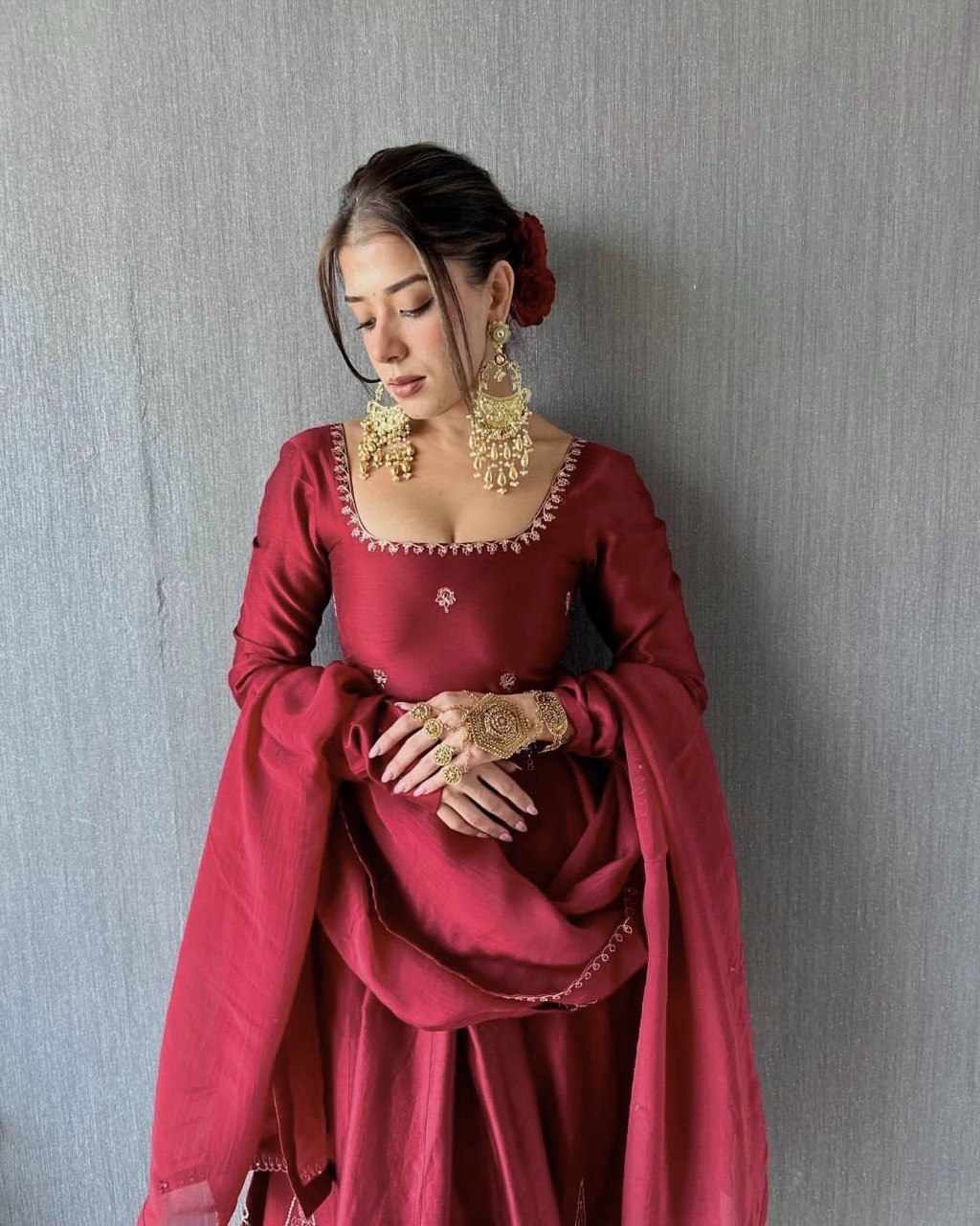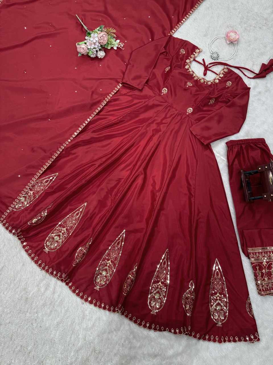 KD 1505 Red Anarkali Natural Crep With Thred & Sequnce work Dress
