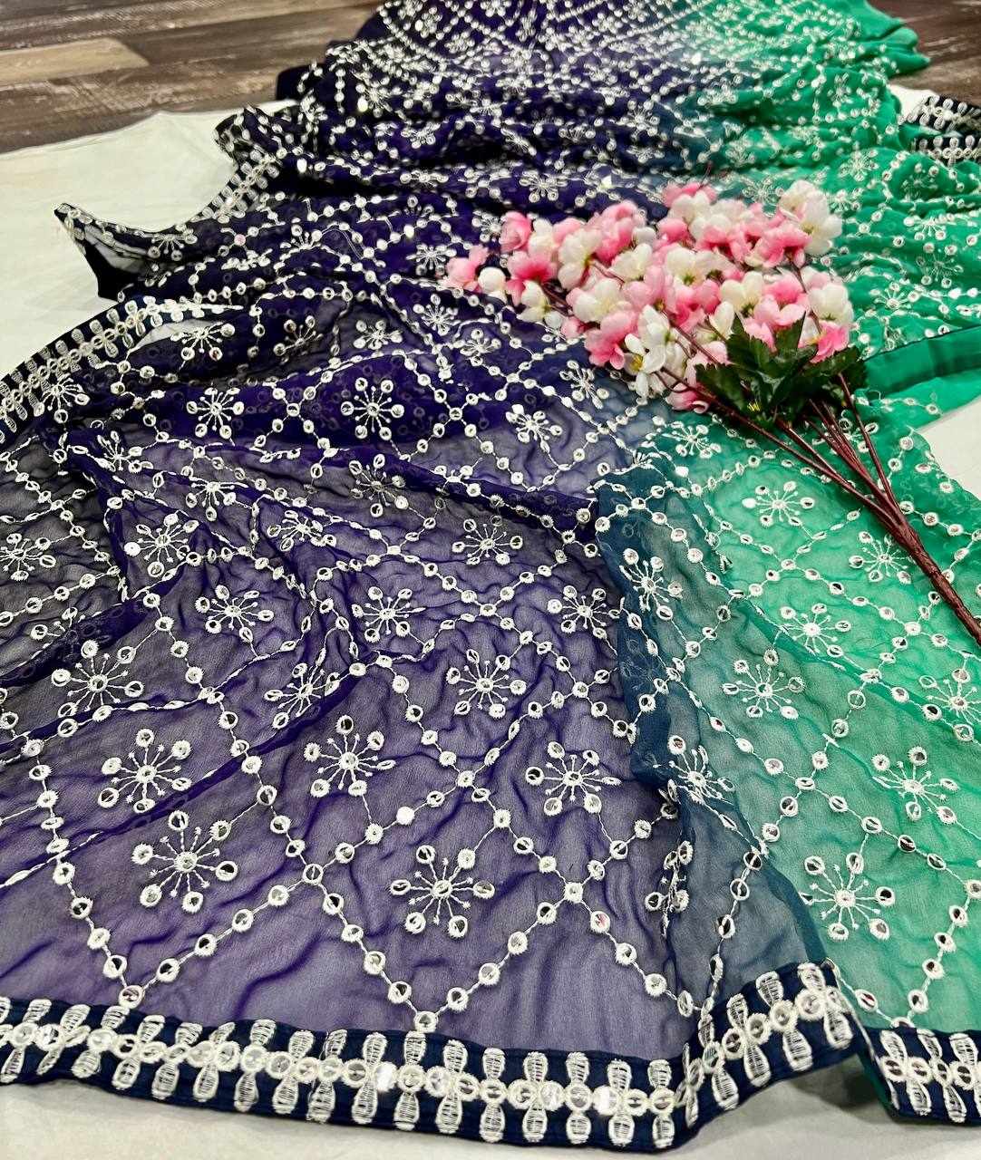 FABRIC: Heavy Fox Georgette With Pedding Print And 7.MM Sequence + Multi Work In Allover Saree