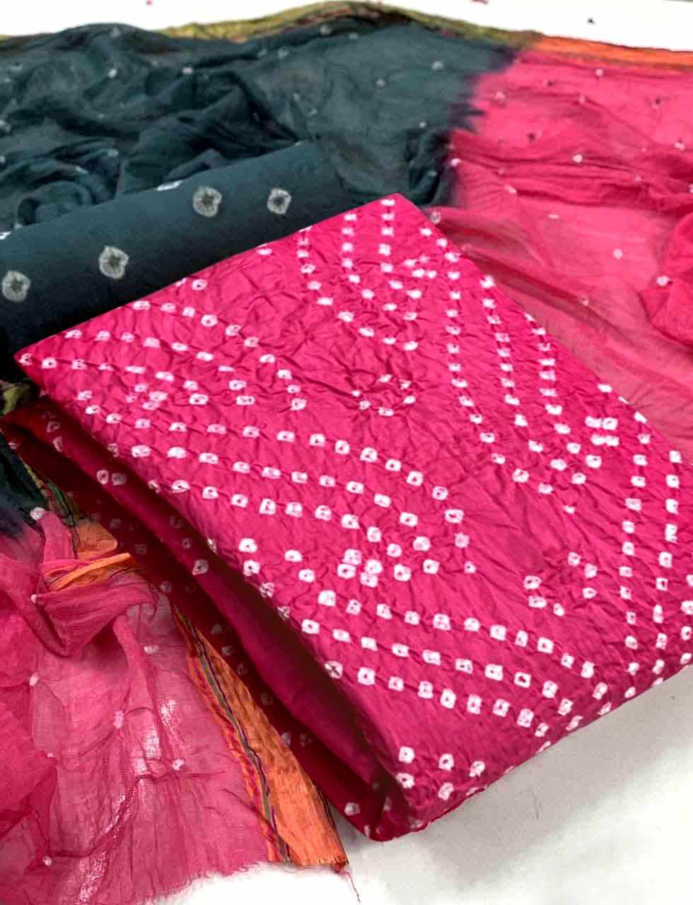 KT KASHTI Pink Pure Satin Cotton Bandhni Dress Materail has been successfully added to your cart .