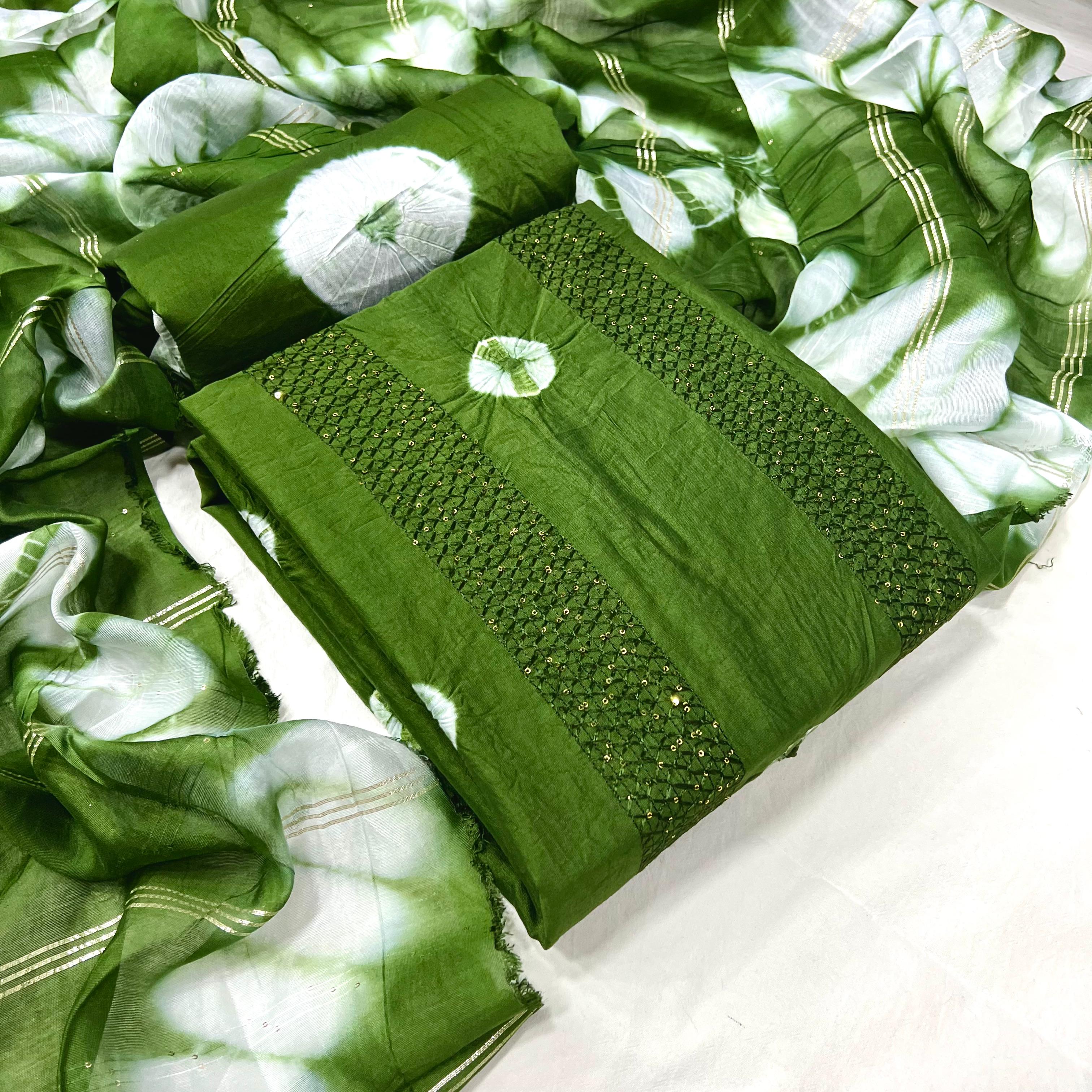 KT MAHARANI Pure viscose Cotton Bandhni sequence work Dress Materail