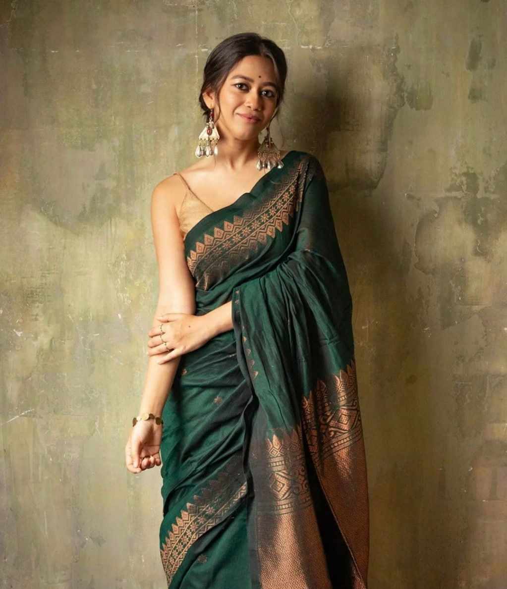 MF 1950 GREEN BANARASI SOFT LICHI SILK SAREE