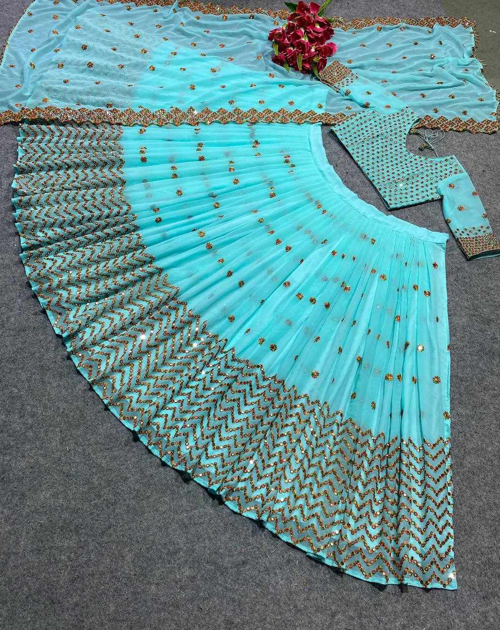 | Name : | MF 412 Blue Heavy Georgette Lehenga |