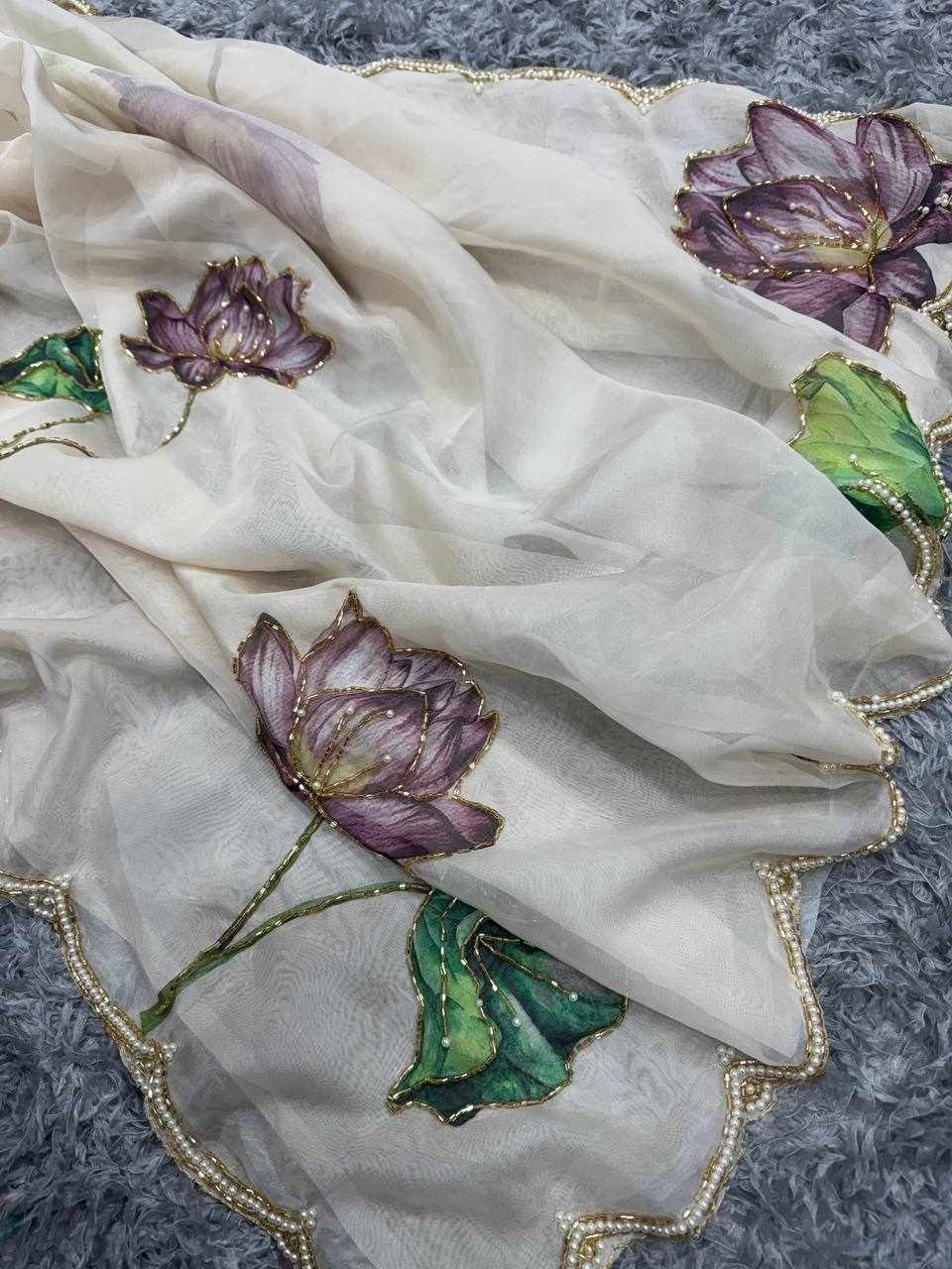 | Name : | NC 5386 Soft Organza White Beautiful floral print Saree |