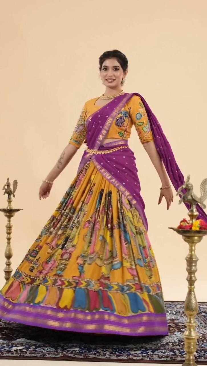 | Name : | Pc 450 Chent Crep kalamkari print Lehenga |