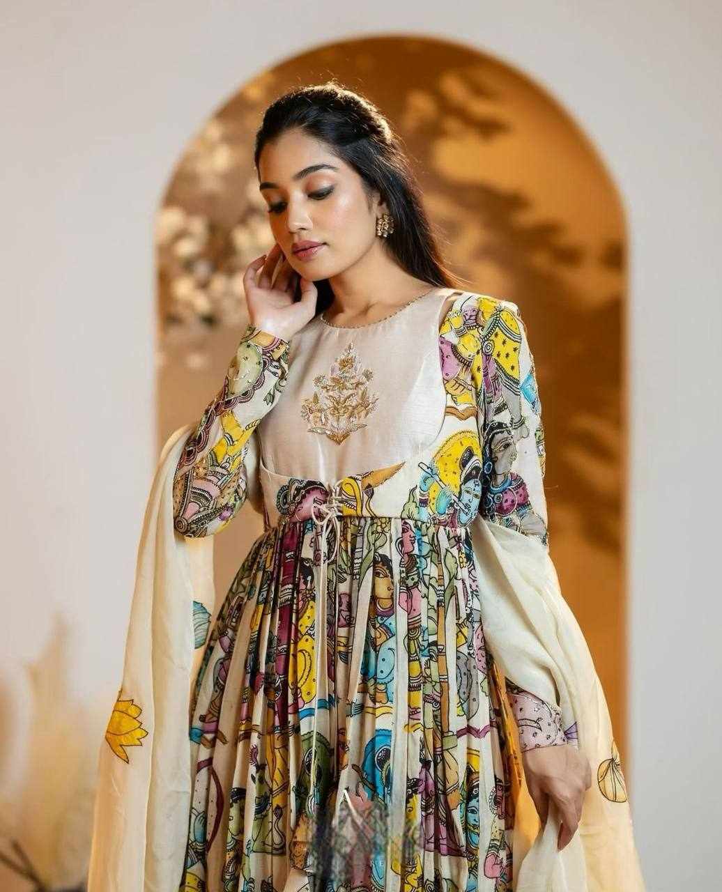 | Name : | PC-452 Kalamkari Gown With Real Handwork |