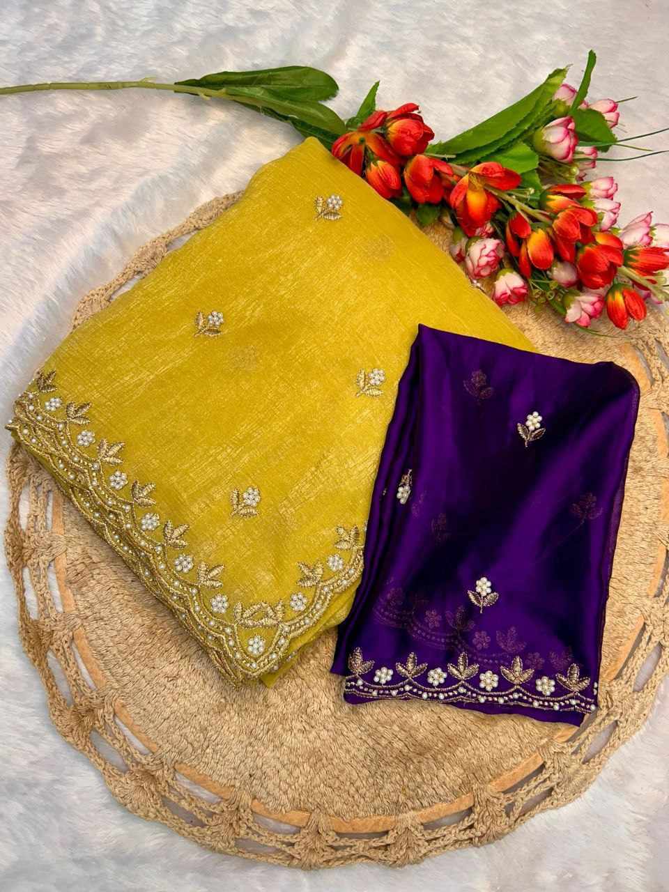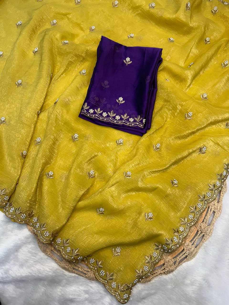 | Name : | RC Mustard Chiffon Crush Silk Saree |