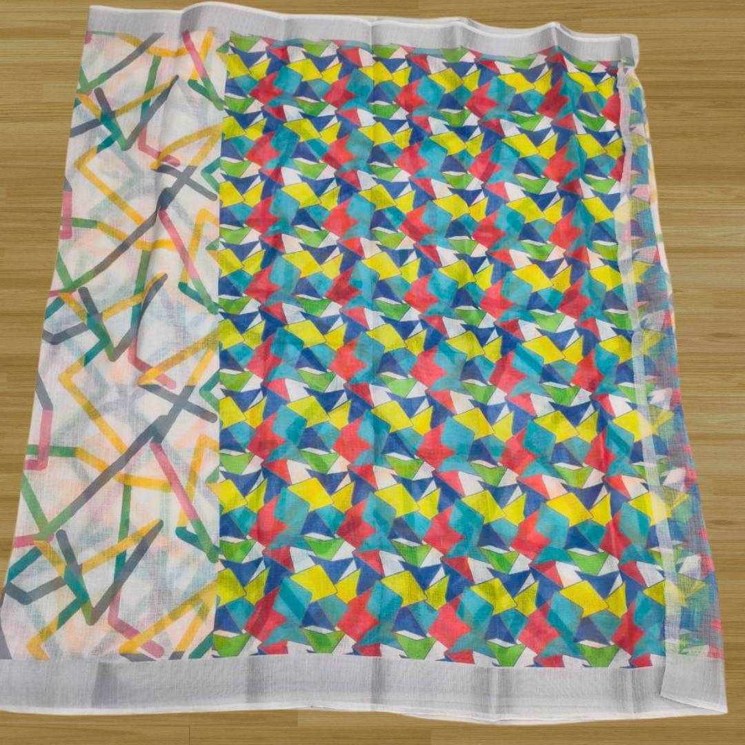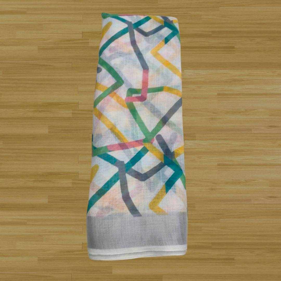 | Name : | S4S Linen White ZigZag Cotton Saree |