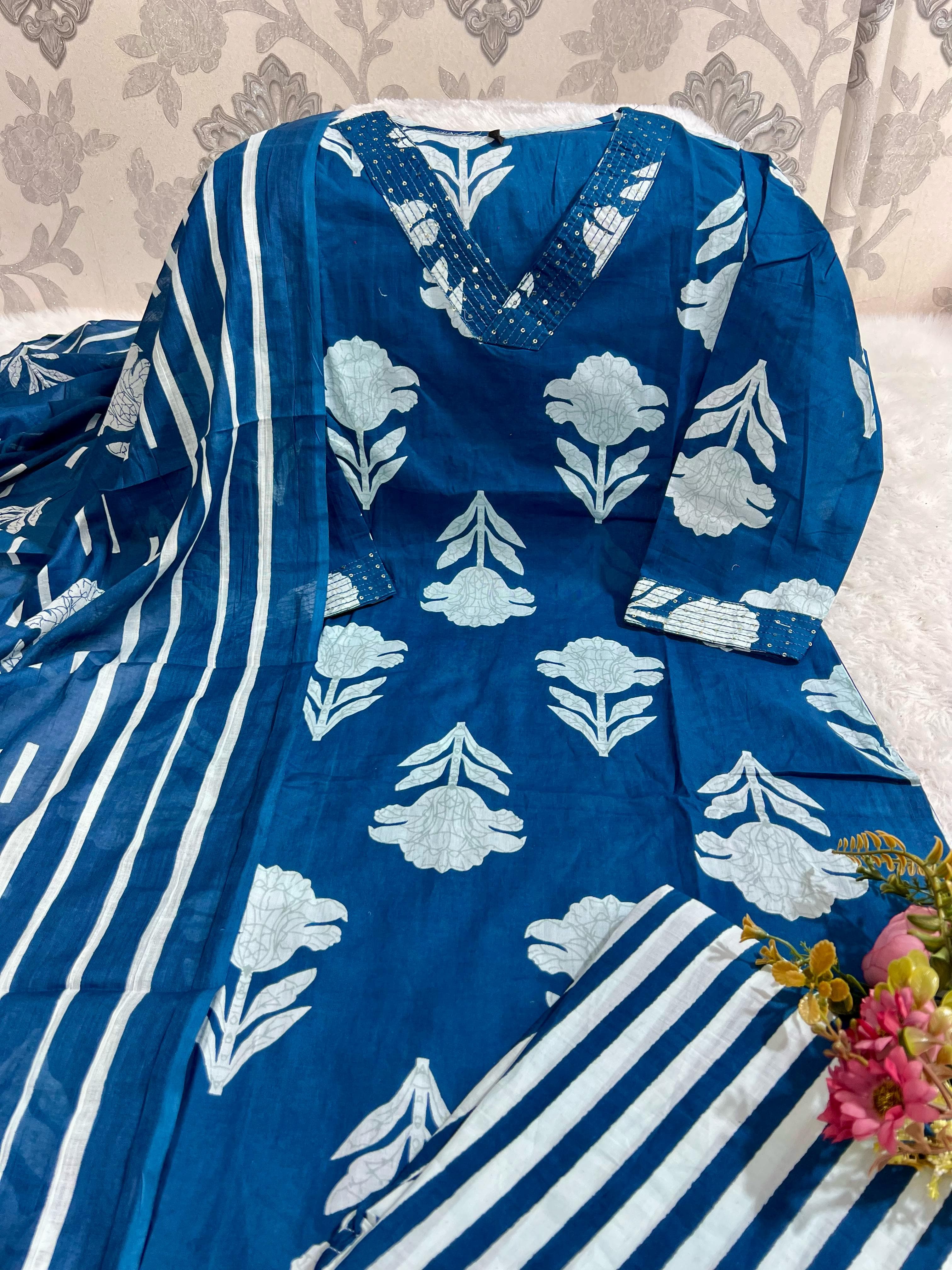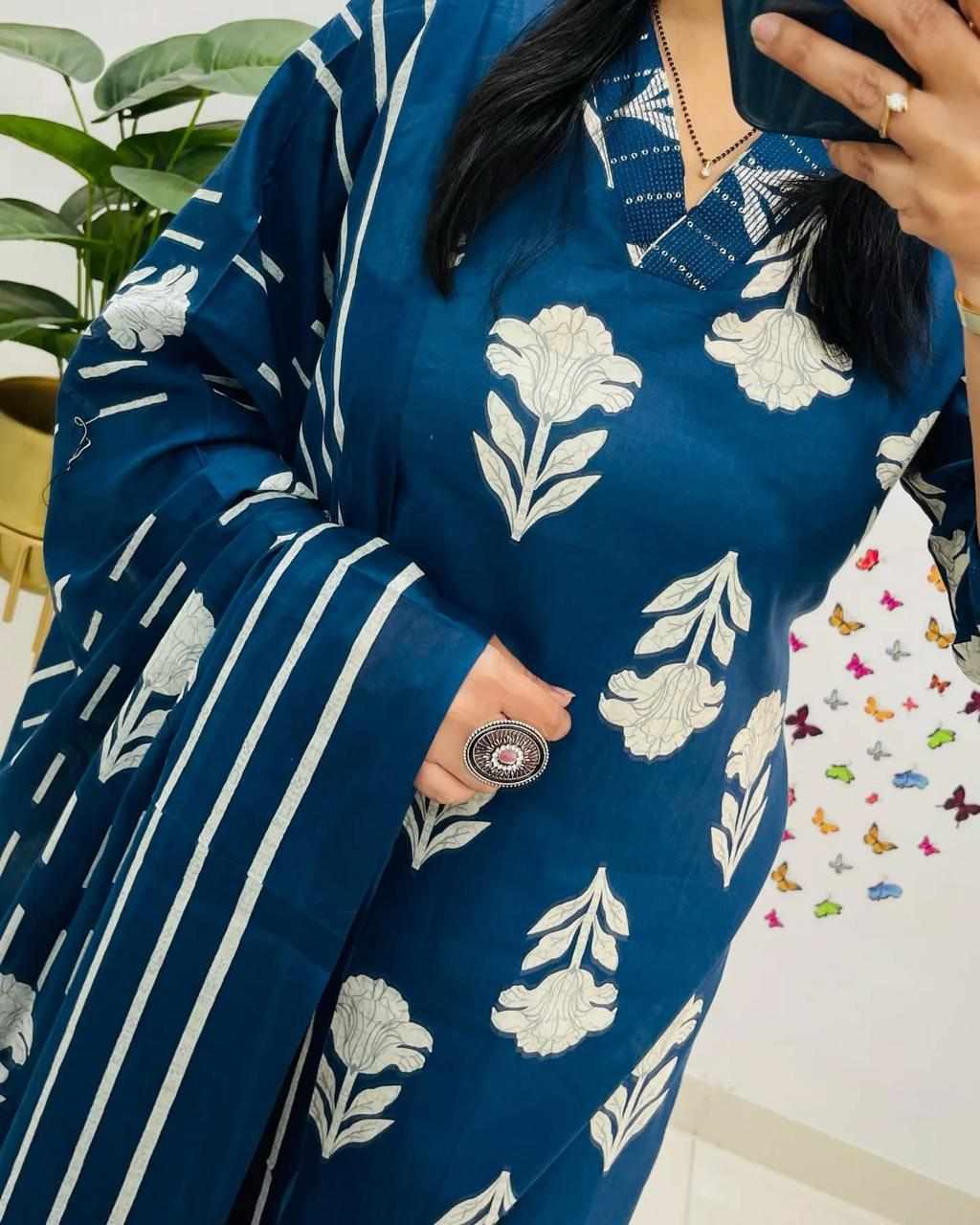 SF 4JU Pure fine Cotton fabric Kurti with Pant with cotton Sequence work Dupatta