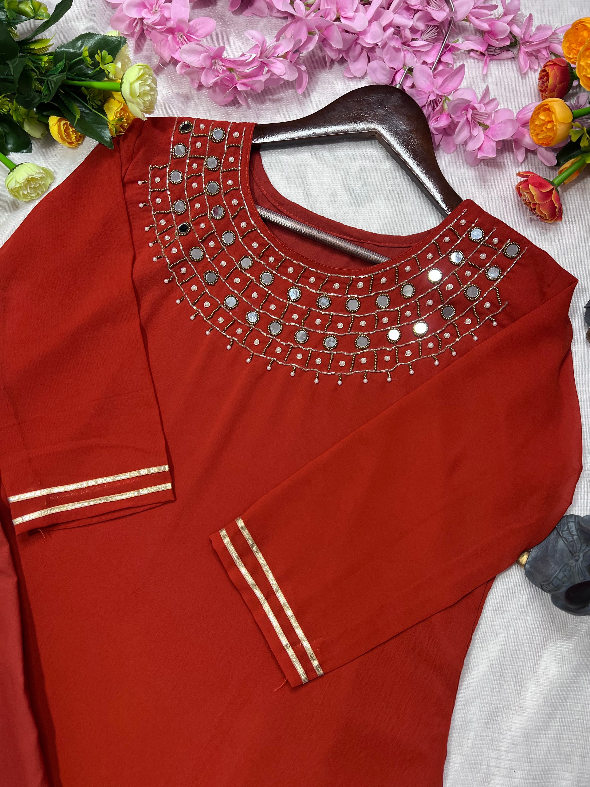WM 22 ORANGE BLOOMING GEORGETTE KURTI