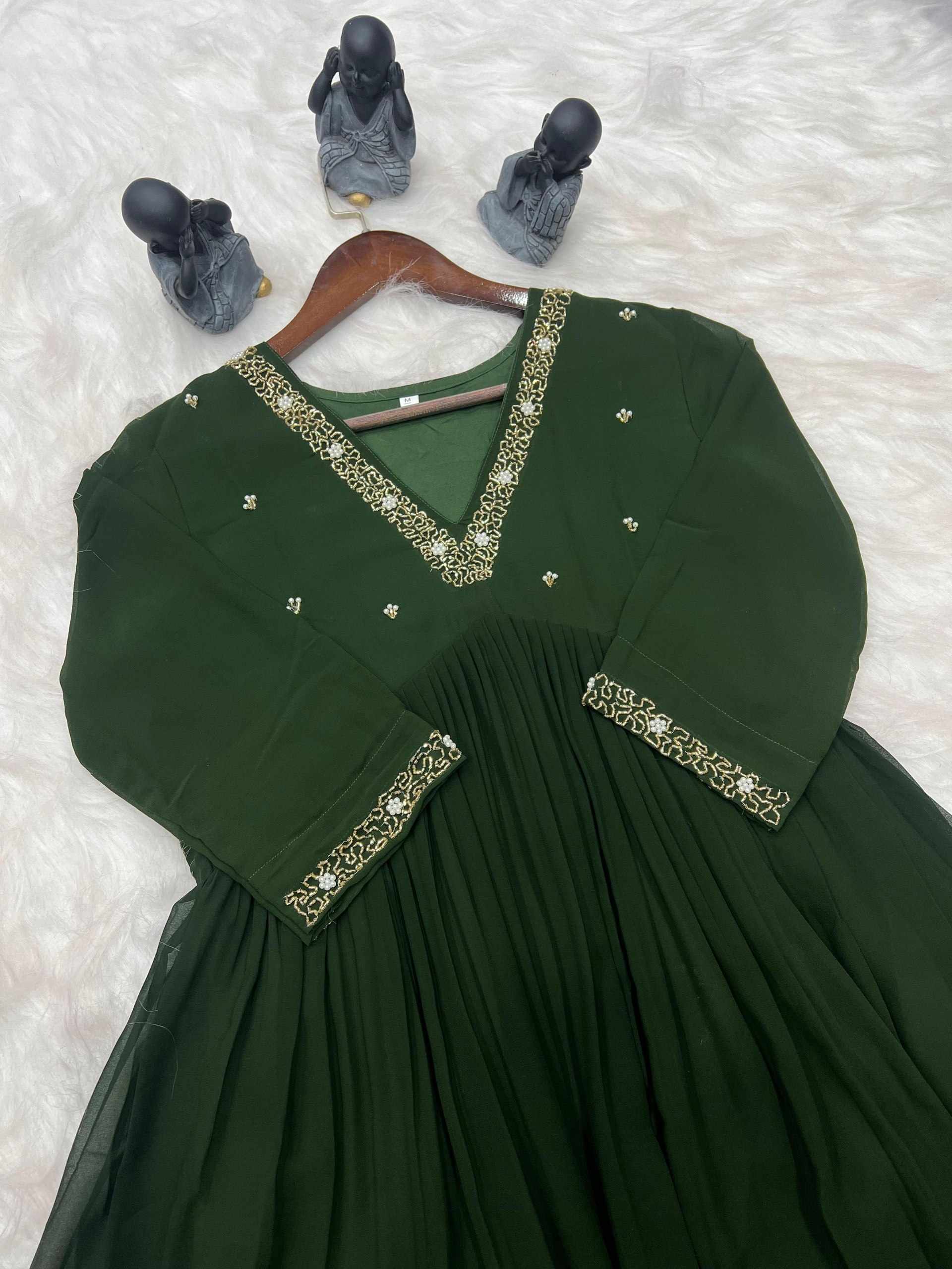 | Name : | WM10 GREEN BLOOMING GEORGETTE HANDWORK KURTI |